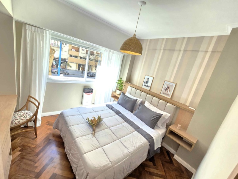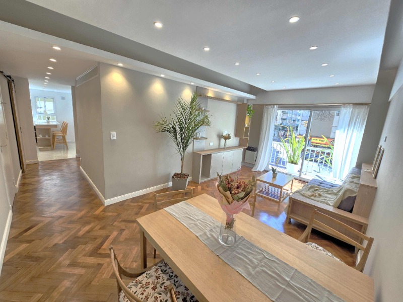 Excelente departamento completamente reciclado, ubicado en planta baja de un edificio con entorno residencial y tranquilo. La unidad ofrece un cómodo living comedor con cocina integrada, un dormitorio principal con placard, un segundo dormitorio más pequeño, baño completo y dos patios que aportan luminosidad y espacio exterior.