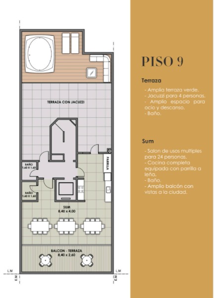 La propiedad cuenta con living comedor con balcón tipo terraza con parrilla, cocina integrada, 1 dormitorio en suite con vestidor y toilete de recepción.