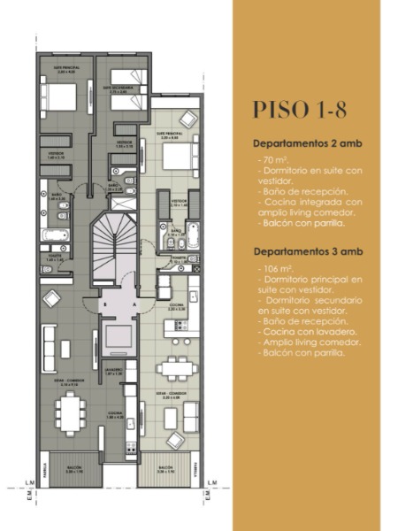 3 AMB 106M2 1°U$S 254.400, 2° U$S 254.400, 3° U$S 260.760, 6° U$S 273.480 y 8° U$S 279.840.-