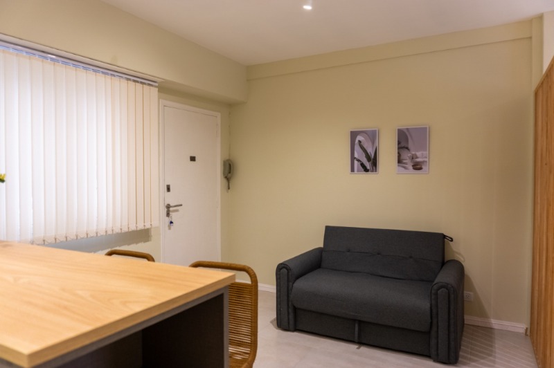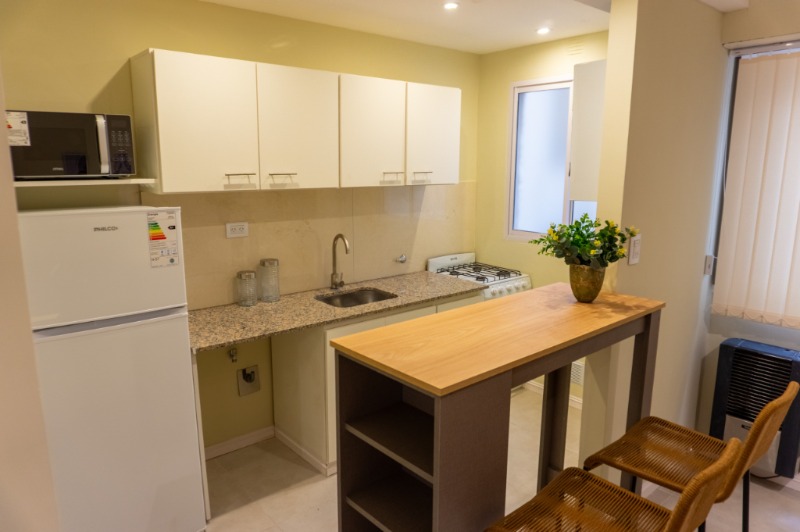 Hermoso y gran ambiente totalmente reciclado a nuevo. Cocina integrada por barra desayunadora y ventilación natural, conexión para lavarropas, alacenas y bajo